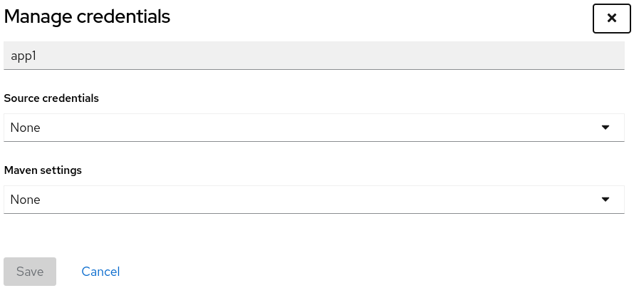 4. Select the credential from the Source credentials or Maven setting drop-down list.