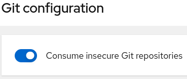- Click the Consume insecure Git repositories toggle switch to enable.