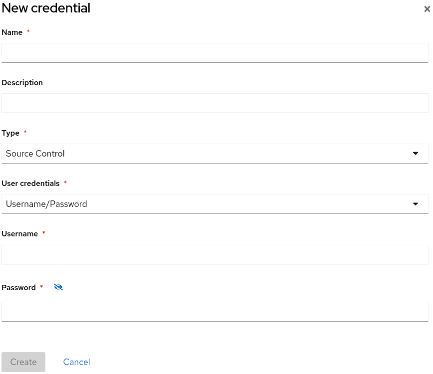 This management module enables administrators to create and manage credentials for access to private repositories. It also allows for the architects to assign the credentials to applications without knowing their contents. Key credential attributes to have before starting the procedure include: