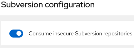- Click the Consume insecure Subversion repositories toggle switch to enable. Subversion
