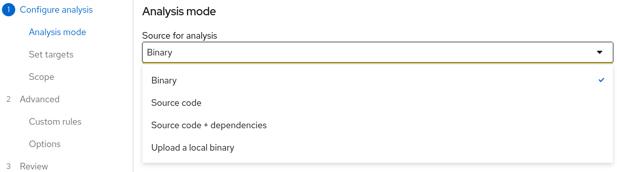 2. Click a radio button to select one of the following scope options to narrow down and focus the analysis.