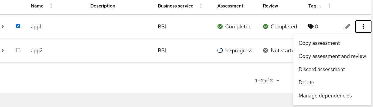Tackle core functions are assessing and analyzing the applications for migration and are performed on the Application inventory page.